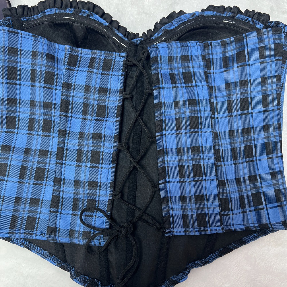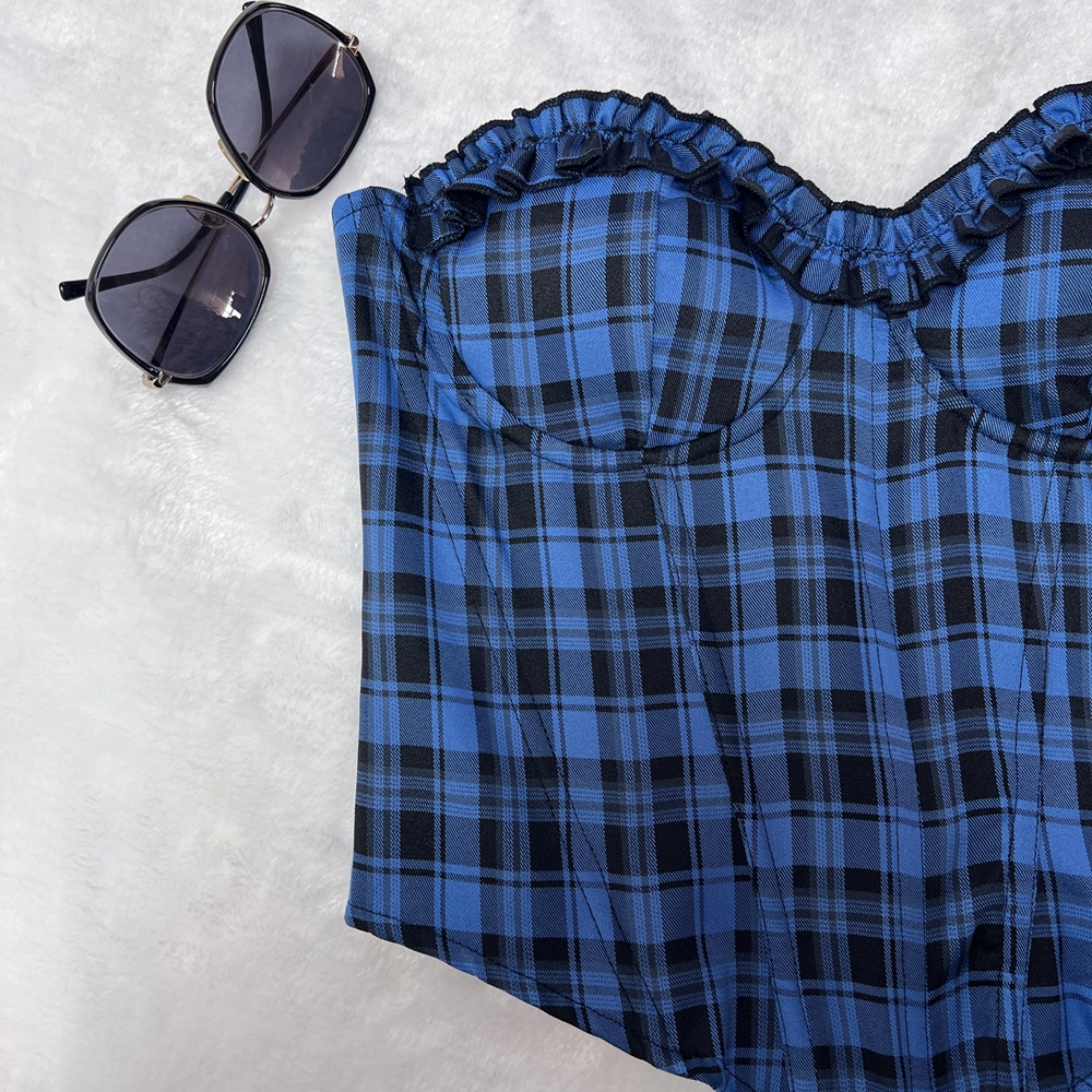 Street-ready, curve-hugging, and zero chill. This ultra-short, slim-fit corset top gives off major main-character energy with its bold plaid print and structured fishbone design. Strapless for maximum attitude, it’s the perfect piece to show off your shoulders, your waist, and your “don’t-mess-with-me” vibe. Rock it solo or layer it for extra street-style drama — either way, all eyes are on you.
