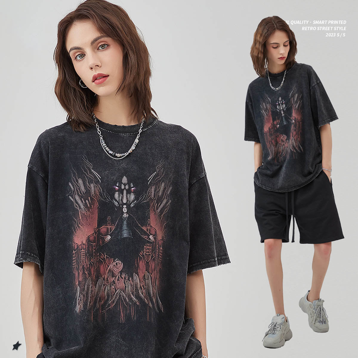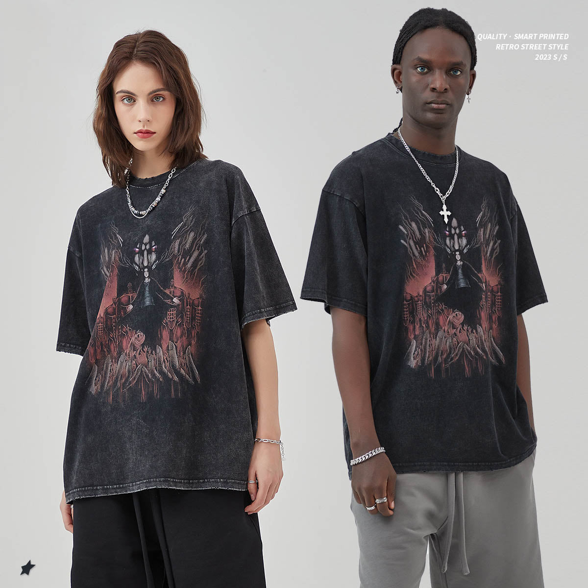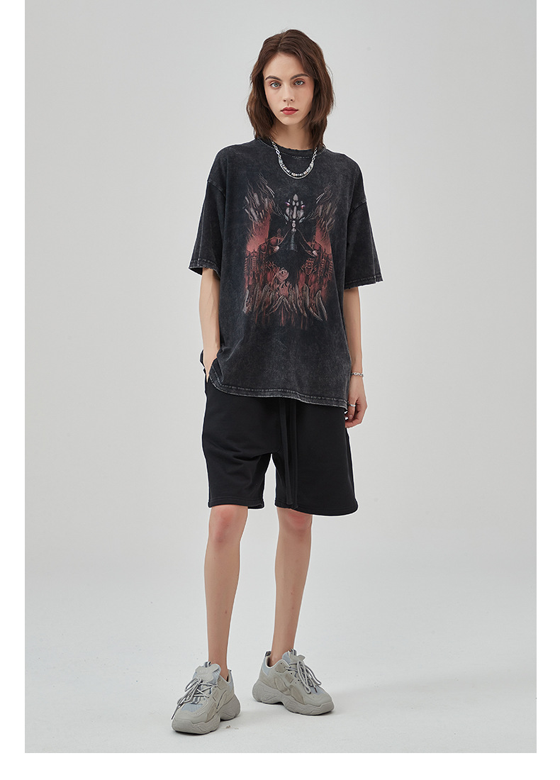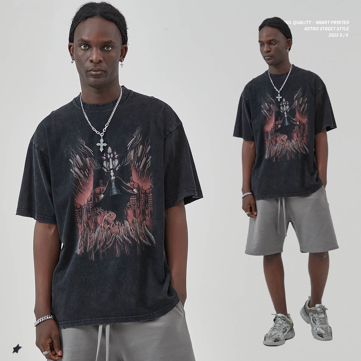 Mens and Womens Wear Worn Out Old High Street Loose Short Sleeve T Strike Giant Print Fried Snow Vintage T shirt