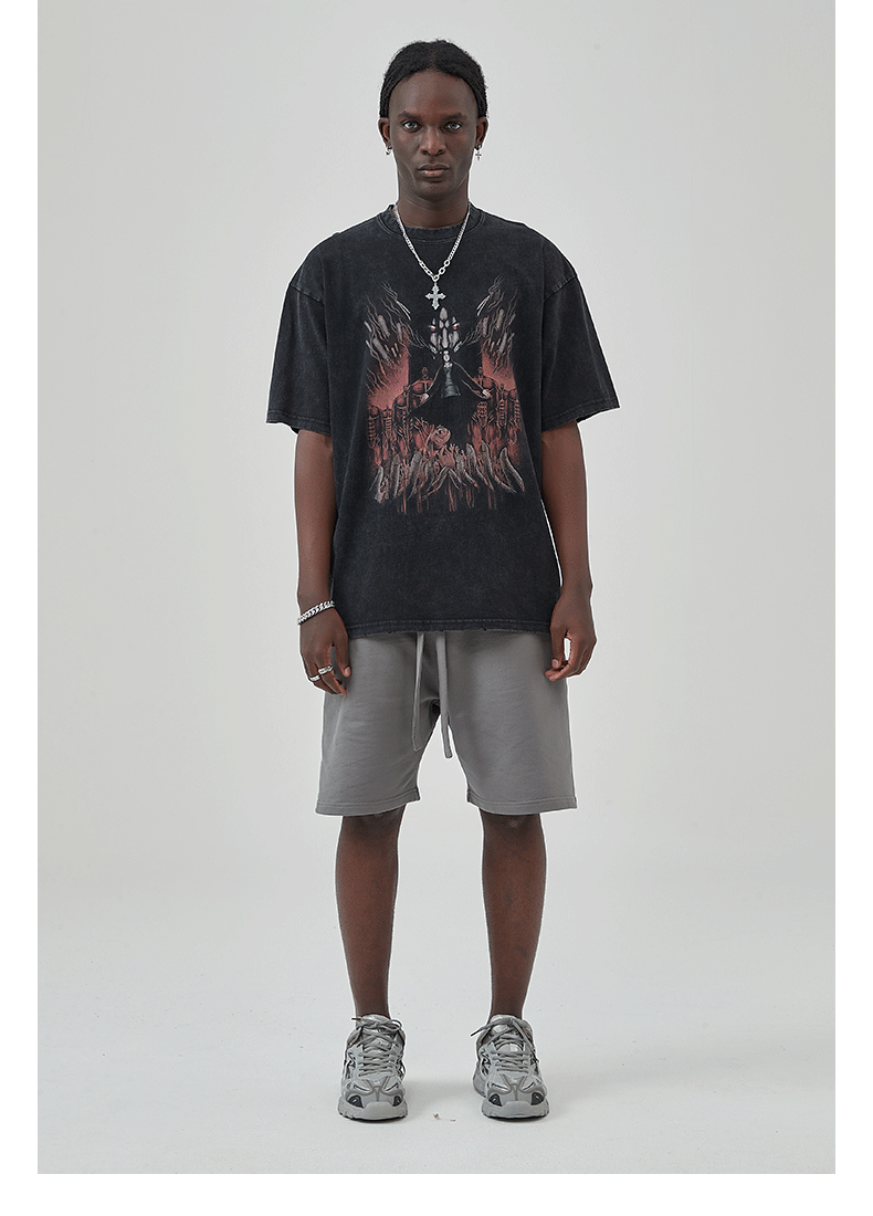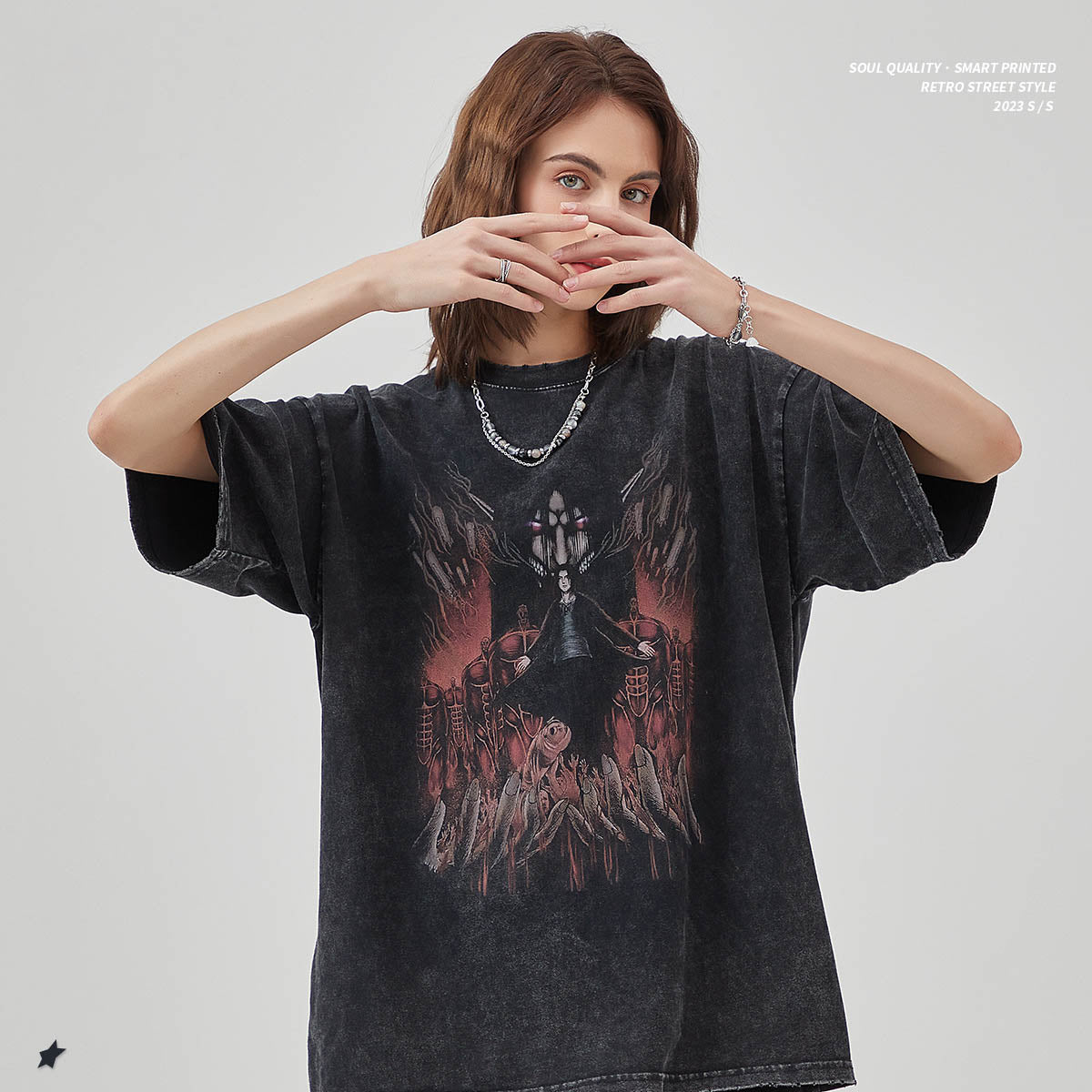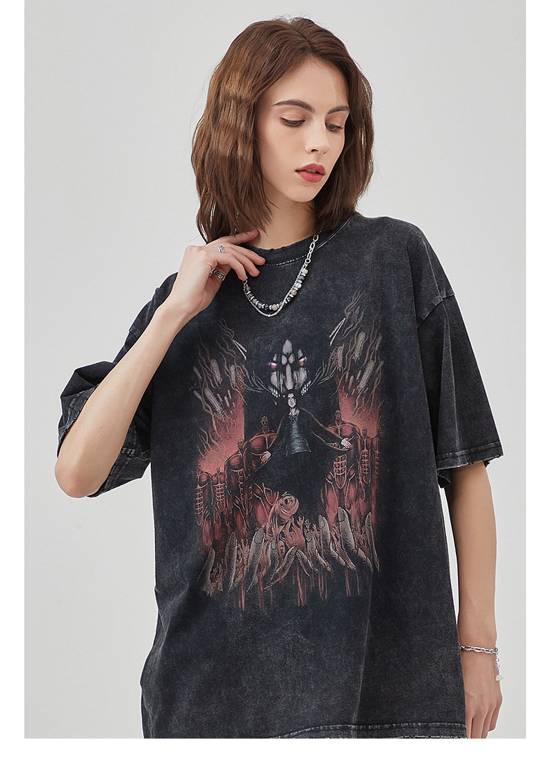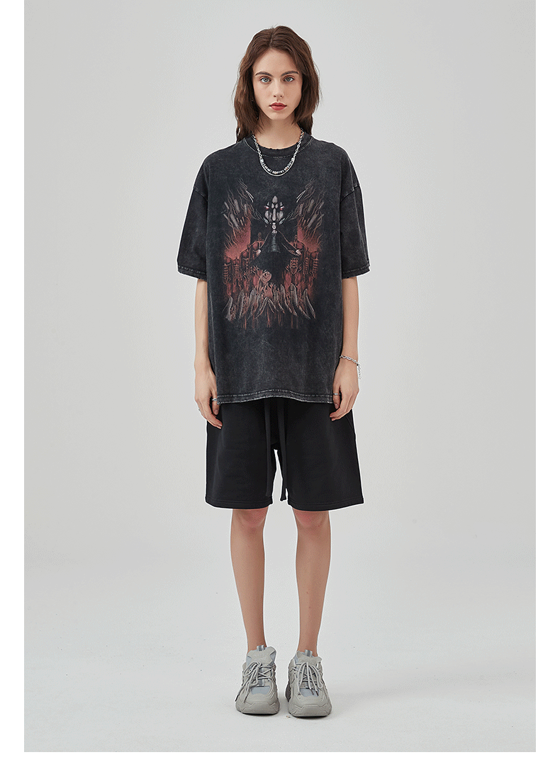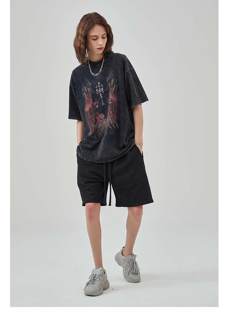 Mens and Womens Wear Worn Out Old High Street Loose Short Sleeve T Strike Giant Print Fried Snow Vintage T shirt