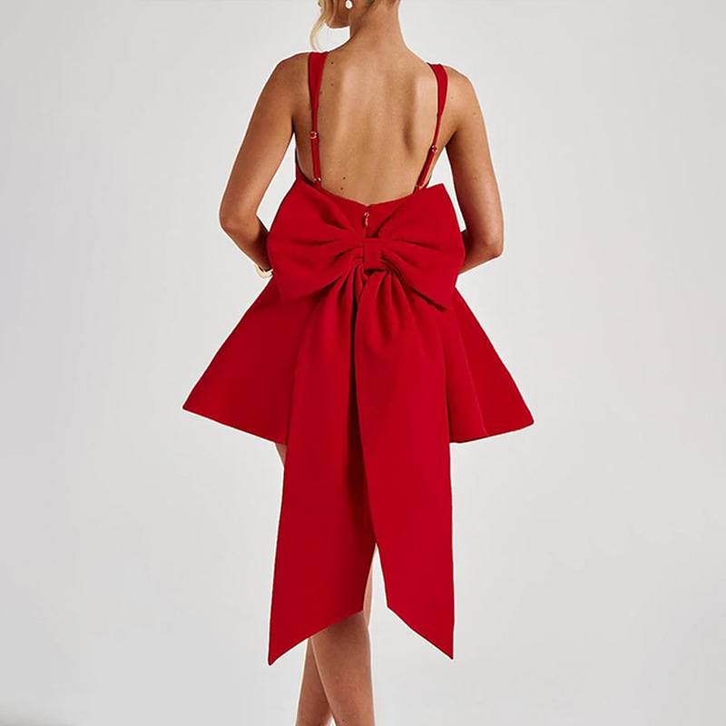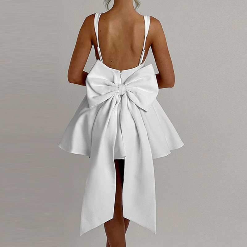 Sweetheart Backless Large Bow Strapless Dress Women's Unique Corset Pattern Splicing Short Skirt
